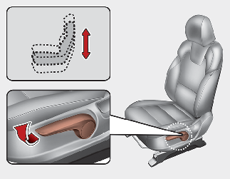 Pour modifier la hauteur du coussin de siège, pousser le levier vers le haut ou vers le bas.