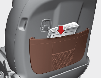 La poche du dossier de siège se trouve derrière le dossier du siège du passager avant et du conducteur.