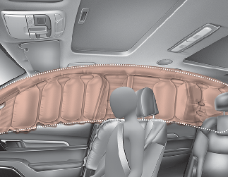 Ne placer aucun objet par-dessus le coussin gonflable. Également, ne fixer aucun objet autour des zones de gonflement des airbags tels que la porte, la vitre de porte latérale, le pied avant et arrière ou le longeron latéral de toit.