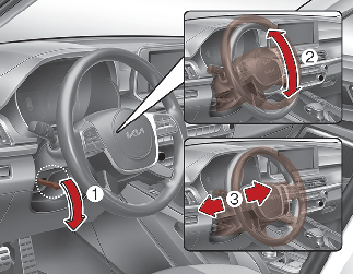 Régler le volant à l'angle (2) et à la hauteur (3) désirés.