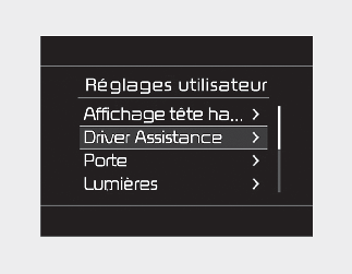 Pour votre sécurité, vous devez modifier les paramètres utilisateur après avoir stationné le véhicule en mettant le levier en position P (stationnement) et en serrant le frein de stationnement.