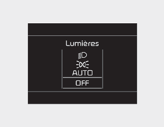 Ce témoin indique quelle lumière extérieure est sélectionnée à l'aide de la commande d'éclairage.