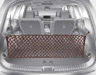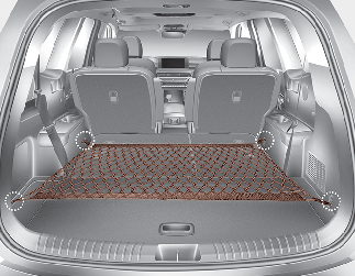 Pour éviter tout déplacement des objets contenus dans l'espace de chargement, vous pouvez utiliser les 4 fixations situées dans l'espace de chargement pour arrimer le filet à bagages.