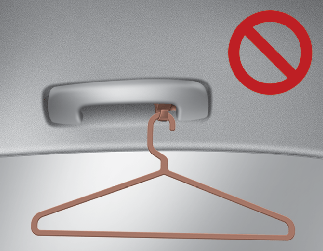 Ne pendez pas de cintres ou d'objets durs à l'exception de vêtements. De plus, ne placez pas d'objets lourds, tranchants ou fragiles dans les poches des vêtements. Lors d'un accident ou lorsque le coussin gonflable rideau se déploie, il peut endommager le véhicule ou causer des blessures corporelles.