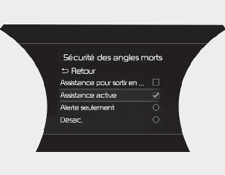 « Driver Assistance → Sécurité des angles morts » à partir du menu de réglage afin de programmer ou non l’utilisation de chaque