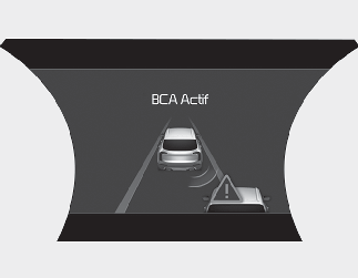 Si l’option « Avertissement seulement » est activée depuis le menu des Réglages, l’alerte de collision sera émise lorsque votre véhicule approche de la voie dans laquelle le véhicule présent dans l’angle mort est détecté.
