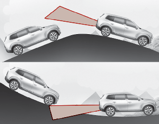 L’assistance à la prévention des collisions dans l’angle mort peut ne pas fonctionner correctement lorsque vous conduisez sur une route inclinée. Le système pourrait ne pas détecter le véhicule dans la voie adjacente ou détecter incorrectement le sol ou la structure.