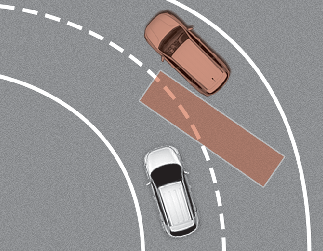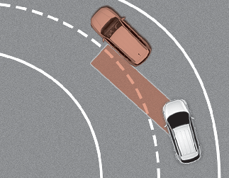 Le « Blind-Spot Collision-Avoidance Assist » (assistance à l’évitement de collision dans l’angle mort) pourrait ne pas fonctionner correctement lors de la conduite sur route sinueuse. Le système pourrait ne pas détecter le véhicule dans la voie adjacente.