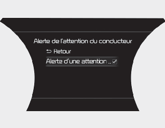 En cas de redémarrage, l’avertissement d’attention du conducteur conserve le dernier réglage sélectionné.