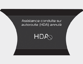 L’avertissement mains libres apparaît lorsque le système détecte que les mains du conducteur ne sont pas sur le volant alors que l’assistance à la conduite sur autoroute est en fonction.