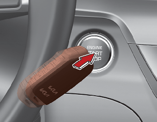 Lorsque vous appuyez directement sur le commutateur ENGINE START/STOP (démarrage/arrêt du moteur) avec la clé intelligente, celle-ci doit toucher le commutateur à angle droit.