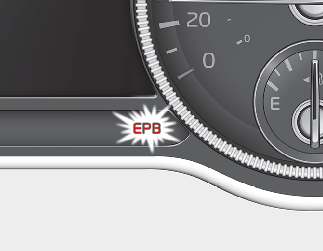 Le voyant d'avertissement du frein de stationnement électronique peut s'allumer si le commutateur du frein de stationnement électronique fonctionne anormalement. Arrêtez le moteur et rallumez-le après quelques minutes. Le voyant d'avertissement s'éteint et le commutateur du frein de stationnement électronique fonctionne normalement. Toutefois, si le témoin reste allumé, faire inspecter immédiatement votre véhicule par un concessionnaire autorisé Kia.