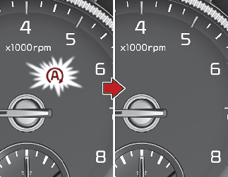 Le moteur démarre et le témoin AUTO STOP vert (