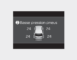La pression des pneus s'affiche 1~2 minutes plus tard après la conduite.
