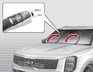 Après avoir coupé le moteur, déplacer le commutateur des essuie-glaces à la position de balayage unique (MIST) dans les 20 secondes et maintenir le commutateur pendant plus de deux secondes jusqu’à ce que le balai d’essuie-glace soit entièrement en position haute.