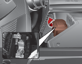 Le système électronique peut ne pas fonctionner correctement même si les fusibles du boîtier à fusibles intérieur ou du compartiment moteur ne sont pas débranchés. Dans ce cas, la cause du problème peut être la déconnexion du fusible principal (type BFT), qui se trouve à l'intérieur du capuchon de la borne positive (+) de la batterie.