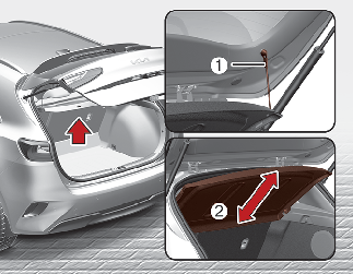 • Wenn Sie die Kofferraumabdeckung wieder in die Originalposition bringen, halten Sie die Abdeckung fest und senken Sie diese ab.