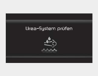In diesem Fall muss der Harnstofftank unverzüglich aufgefüllt werden. Wenn die verbleibende Harnstofflösung im Harnstofflösungsbehälter sich einem zu niedrigen Füllstand nähert, erscheint die Warnmeldung „Urea auffüllen in 000 km oder Fahrzeug wird sonst nicht mehr starten“ mit SCR-Warnleuchte (). „xxx km“ stellt die verbleibende zulässige Fahrstrecke dar, daher darf ohne Nachfüllen nicht weiter bis zur Grenze der verbleibenden Fahrstrecke gefahren werden.