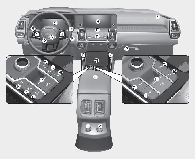 Knapp for forsetevarmer og luftventilert sete Flere detaljer, Flere detaljer