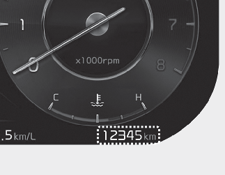 Kilometertelleren viser den totale strekningen bilen har kjørt og bør brukes til å bestemme når periodisk vedlikehold skal utføres.
