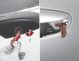 Hvis en elektrisk dørlåsbryter ikke fungerer (f.eks. ved dødt batteri) er den eneste måten å låse døren på med den mekaniske nøkkelen fra det utvendige nøkkelhullet.