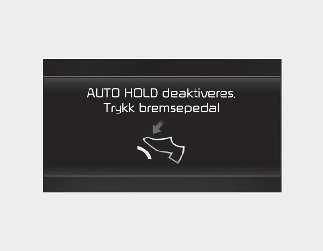 Når denne meldingen vises kan ikke Auto Hold og EPB benyttes. For din sikkerhet, trå ned bremsepedalen.
