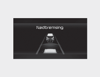For å varsle føreren om at bremsing vil bli assistert blir varselmeldingen 'Nødbremsing' vist på instrumentpanelet, det høres en varsellyd og rattet vil vibrere (utstyrsavhengig).