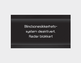 Hvis dette skjer, blir varselmeldingen 'Funksjon for blindsonesikkerhet' deaktivert. Radar blokkert' vist på instrumentpanelet.