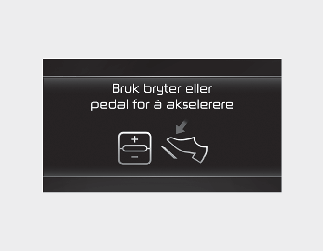 I tillegg, etter at bilen har stoppet og det har gått en viss tid, vil meldingen 'Bruk bryter eller pedal for å akselerere'