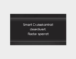 Hvis dette skjer vises meldingen 'Smart Cruise Control disabled. Radar blokkert’ i løpet av et bestemt tidsrom på instrumentpanelet.