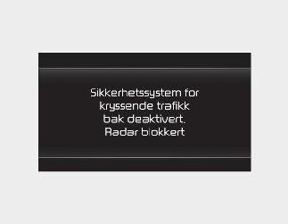 Hvis dette skjer, blir varselmeldingen ‘Funksjon for krysstrafikksikkerhet bak deaktivert. Radar blokkert' vist på instrumentpanelet.