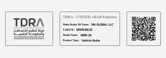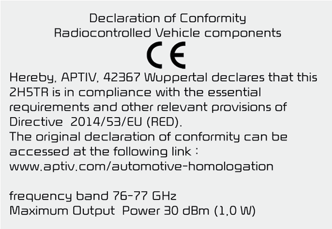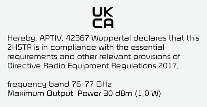 Radiofrekvenskomponentene (hjørneradar bak) (type A) samsvarer med: