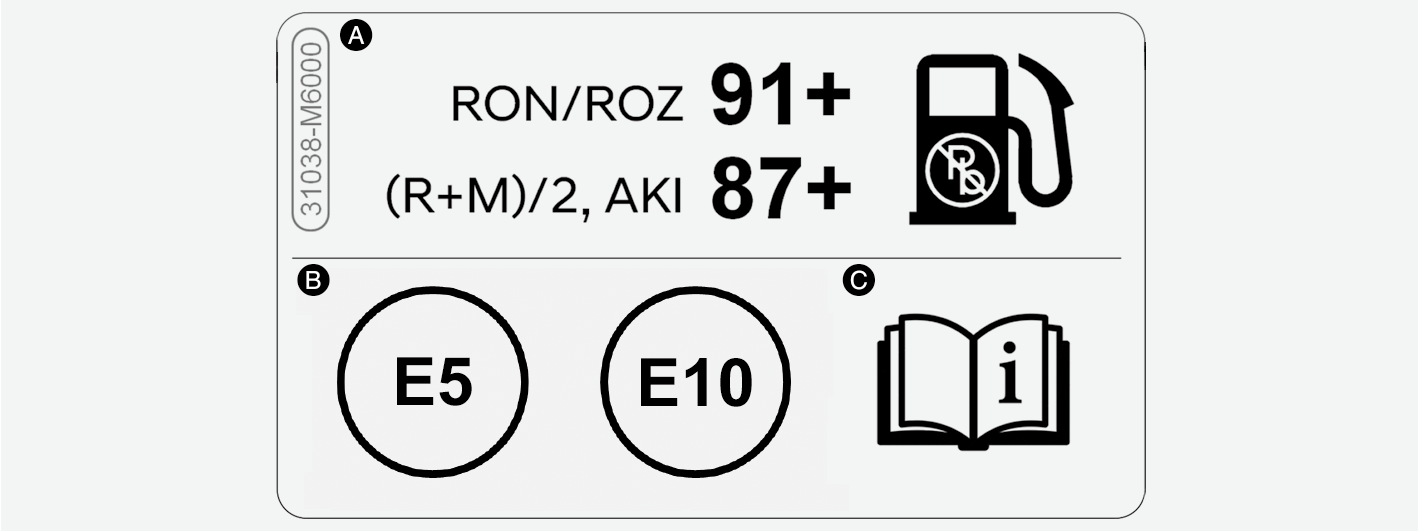 * Disse symbolene indikerer hva slags bensin som kan brukes. Ikke bruk andre drivstofftyper.