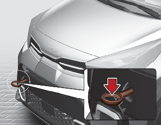 如果在緊急情況中無法聯絡到拖吊服務公司,則可以暫時使用緊固在車輛前部 (或後部) 下方的緊急拖吊掛鉤上的鋼索或鏈子來進行拖吊。拖吊時要保持高度警惕。駕駛需在被拖吊的車輛駕駛座上操縱方向盤和煞車裝置。