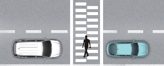 Винаги се оглеждайте за пешеходци, когато автомобилът Ви поддържа дистанция спрямо превозното средство отпред.