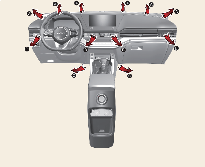For rear seats, the air discharge area can be controlled. Air discharged from (A) spreads over a wider area (