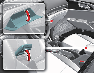 Lift the armrest upward to open the center console storage.