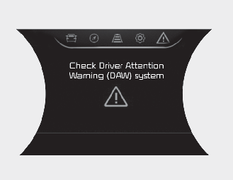 Când apare mesajul de avertizare „Check Driver Attention Warning (DAW)”, funcția nu rulează corespunzător. În acest caz, verificați funcția la un atelier specializat. Kia vă recomandă să vizitați un dealer/service partener autorizat Kia.