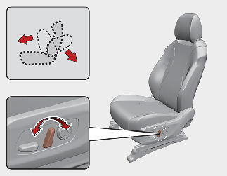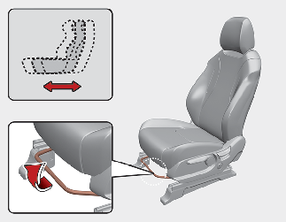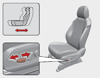조절 스위치를 앞 또는 뒤로 움직이면 시트가 앞 또는 뒤로 이동합니다. 원하는 위치에 이르면 스위치에서 손을 놓으십시오 .