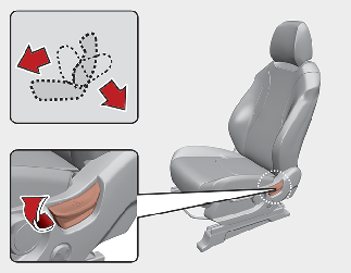 시트에 앉은 상태에서 등을 앞으로 약간 숙이고, 시트 바깥쪽에 위치한 리클라이닝 레버를 위로 당기십시오.
