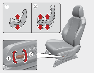 전동식 시트 조절 장치는 모터에 의해 작동됩니다. 조절이 완료되면 작동을 멈추십시오. 과도한 조작은 전기 장치에 손상을 줄 수 있습니다.