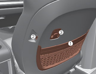 또한, 시트백 측면에 USB 포트(2)와 동승석 후면에 쇼핑백을 걸 수 있는 후크(3)가 있습니다.