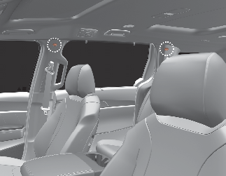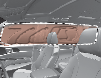 사이드 및 커튼 에어백이 있는 위치에는 어떤 물건도 설치 하지 마십시오. 또한, 커튼 에어백이 팽창되는 부근(도어, 도어 유리창, 앞뒤 옆의 필러 트림, 루프 사이드레일)에도 물건을 부착 하지 마십시오.