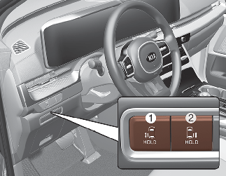 파워 슬라이딩 도어가 열린 상태에서 파워 슬라이딩 도어 열림 버튼을 길게 (약 1초 이상) 누르면 비상 경고등 및 경고음이 작동하며 파워 슬라이딩 도어가 열리거나 닫힙니다.