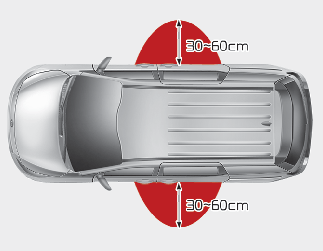 파워 슬라이딩 도어 약 30 ~ 60 cm 이내에 스마트키가 감지되면 웰컴 경보가 작동하면서 기능이 작동됩니다.