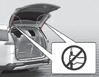 테일게이트를 지지하고 있는 부품 (가스 리프터)을 잡지 마십시오. 이 부품을 잡고 힘을 가하면 안전사고의 위험이 있으니 주의하십시오.