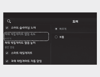 파워 테일게이트 초기 작동 속도는 '빠르게'로 설정되어 있습니다.