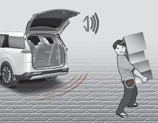 스마트키를 휴대하고 테일게이트 후방 감지영역 약 50 ~ 100 cm 이내 접근하면 최대 2분간 알림음이 작동됩니다.