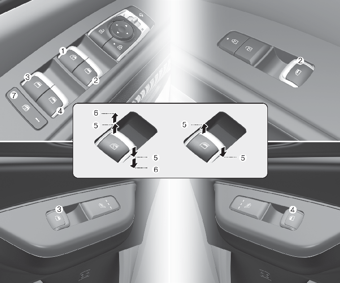 뒷좌석(우측) 유리창 개폐 스위치