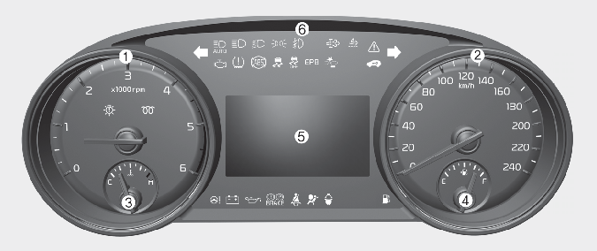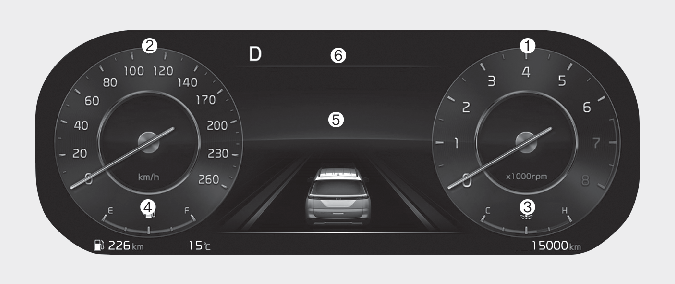 * 예시된 계기판 형상과 LCD화면의 내용은 실제 차량의 형상 및 내용과 상이할 수 있습니다.